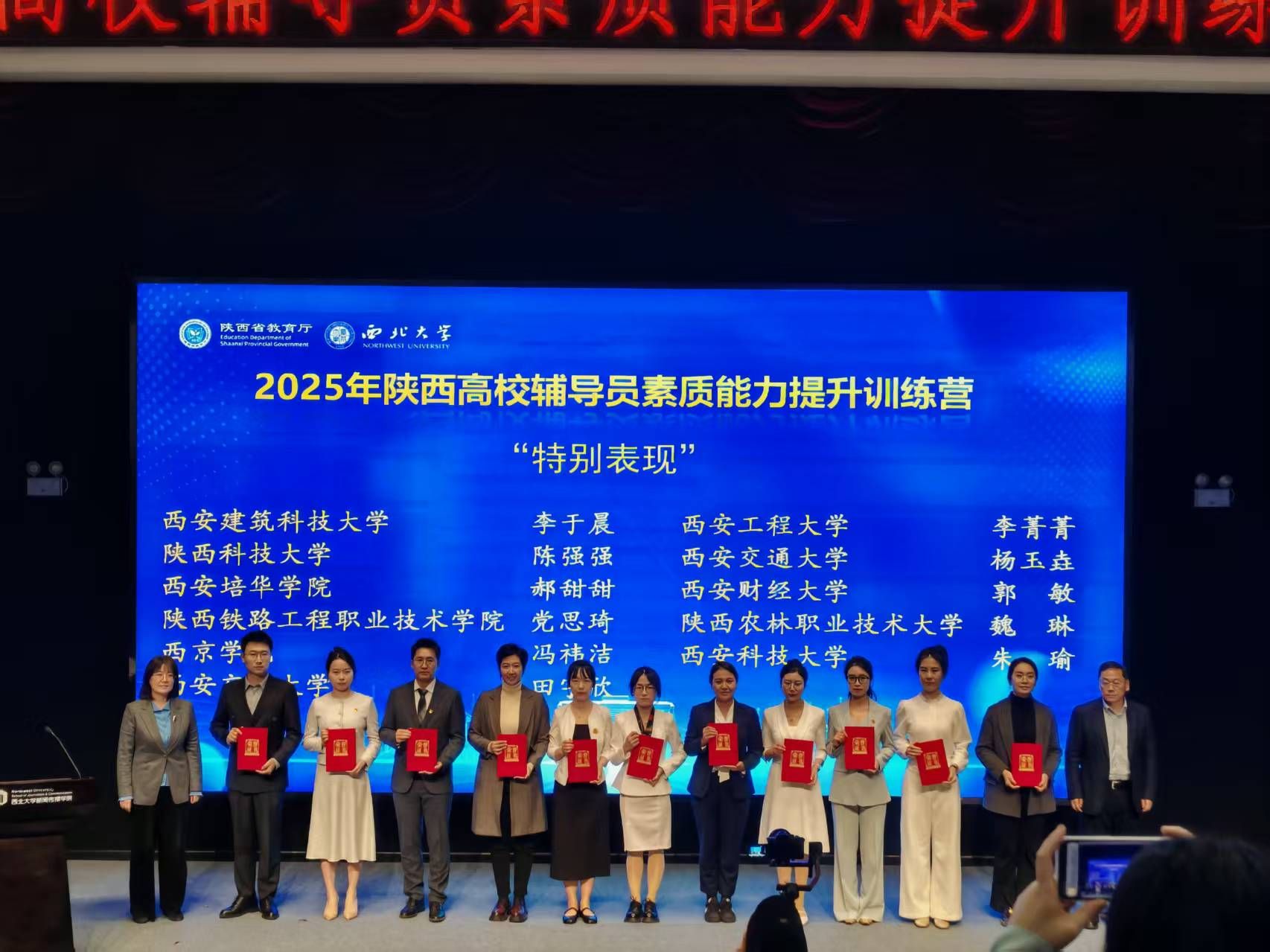 11月5日至7日,中共陕西省委教育工委、陕西省教育厅主办的2025年陕西高校辅导员素质能力提升训练营在西北大学长安校区举行。我校建筑工程学院辅导员魏琳在此次训练营中凭借扎实的理论功底和出色的实务能力脱颖而出,获得“特别表现”荣誉称号。