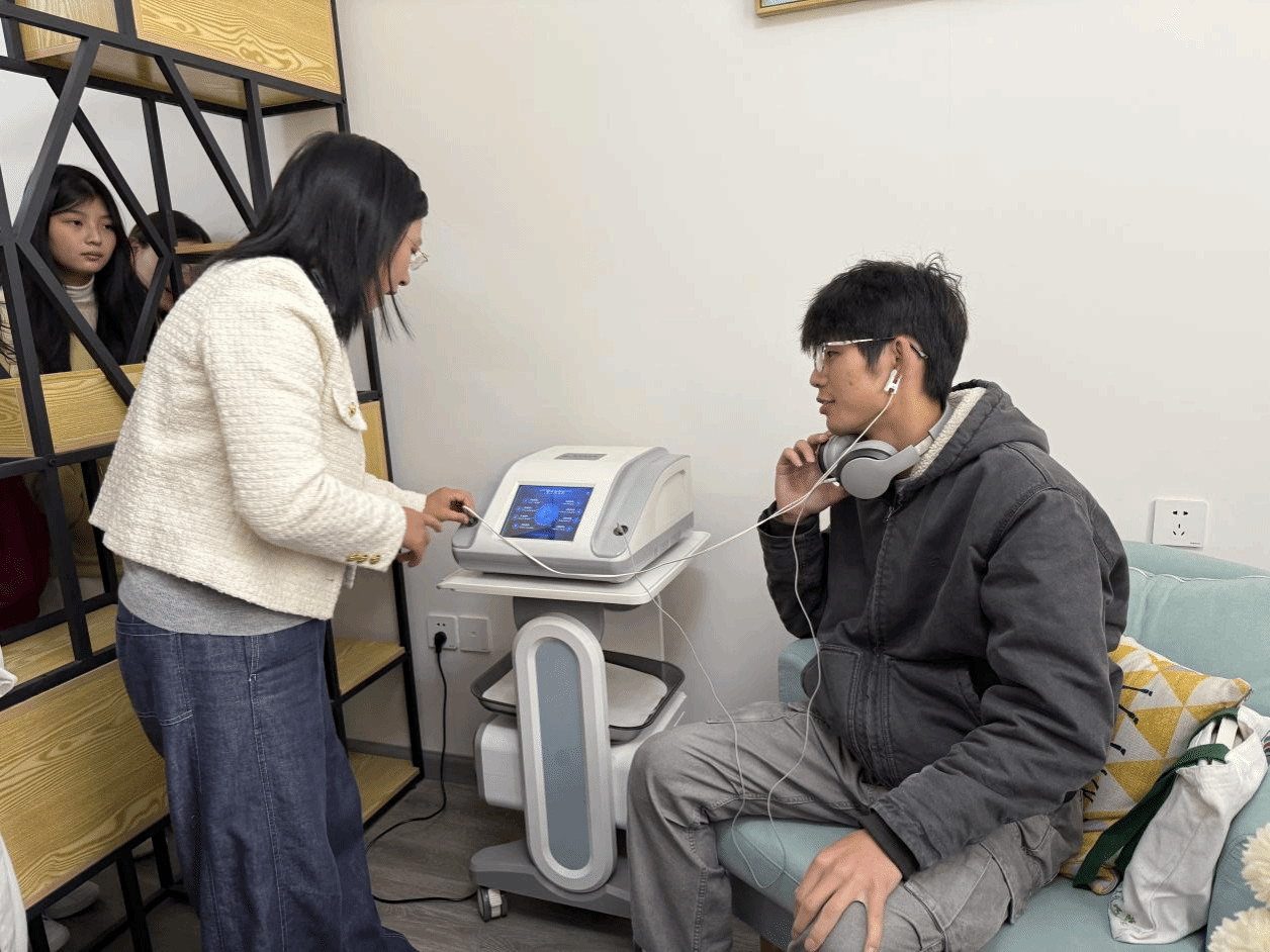 活动中,学生有序参观了心理咨询室、放松训练室、情绪宣泄室等多个功能室,了解并亲身体验了生物反馈仪、音乐放松椅等专业仪器的使用方法。同时,指导老师还通过现场演示、发放指引手册等方式,清晰讲解了线上预约咨询、线下当面咨询等多种预约途径,让学生知晓遇到心理困惑时的应对办法。