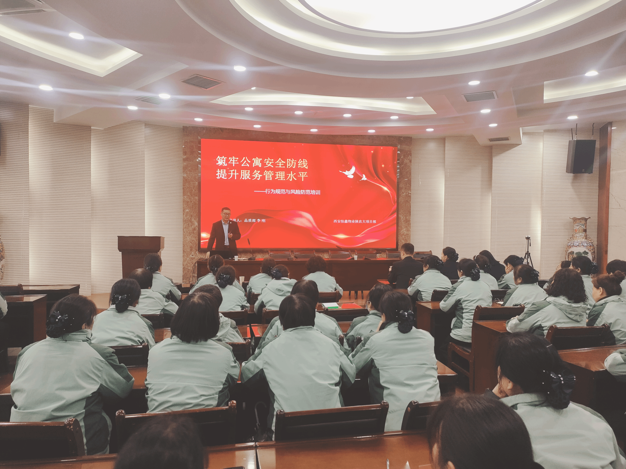 西安怡鑫物业公司负责人结合多年行业管理经验,以“筑牢公寓安全防线·提升服务管理水平”为主题开展业务培训。培训围绕“角色认知、行为规范、安全管理、非法组织识别及舆情应对处置”四个方面进行系统讲解,内容深入浅出、案例详实,兼具针对性与实操性,有效提升了参训人员的责任意识与业务能力。