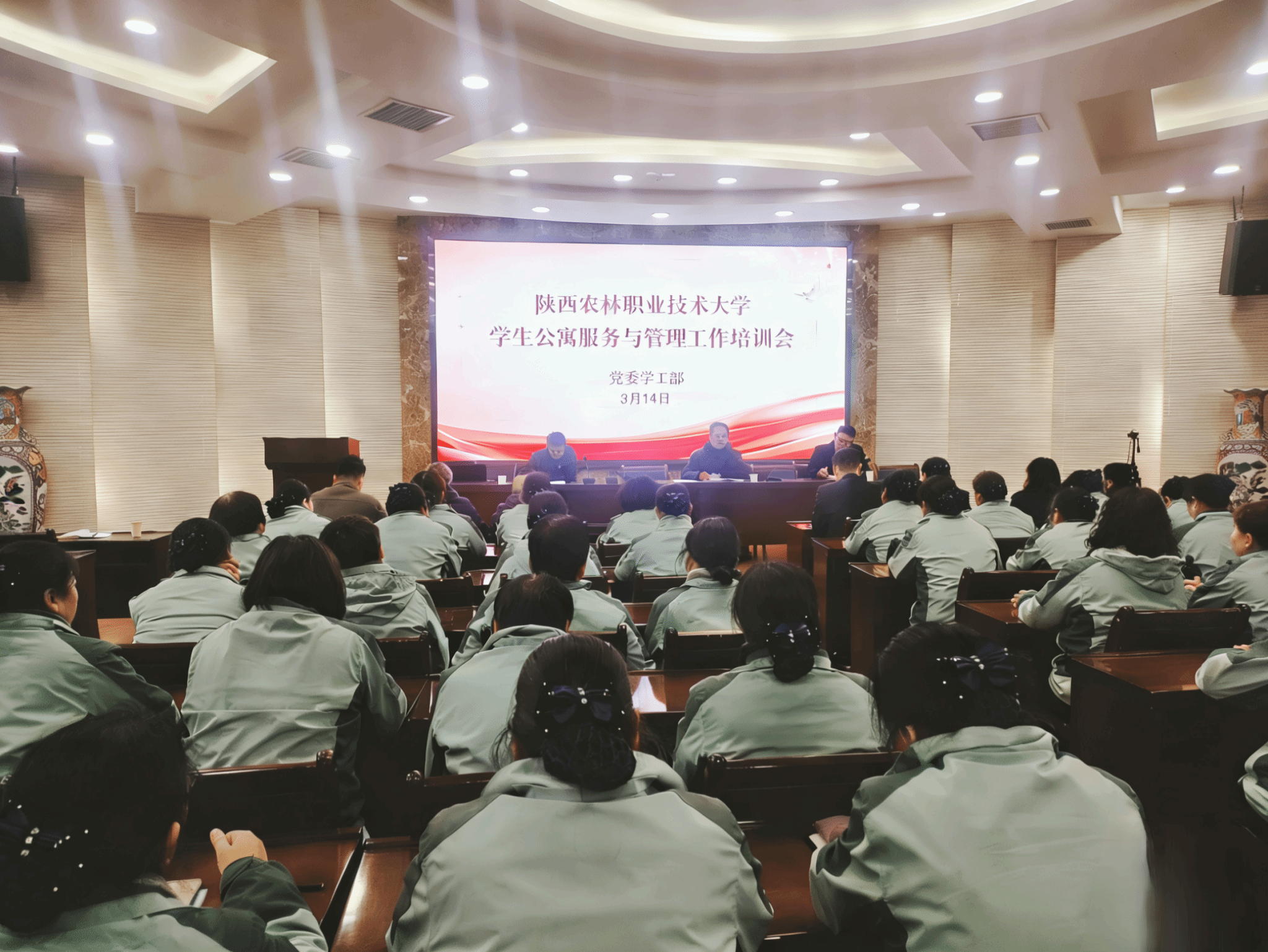 为进一步提升学生公寓管理服务水平与质量,强化公寓管理人员及物业员工的思想政治素质、业务能力、育人职责和安全责任意识。3月14日上午,学校党委学工部组织召开学生公寓工作专题培训会。党委学工部部长孙承俊出席并讲话,副部长张齐主持会议,三校区公寓管理科全体工作人员、西安怡鑫物业公司项目负责人及全体物业人员70余人参加培训。