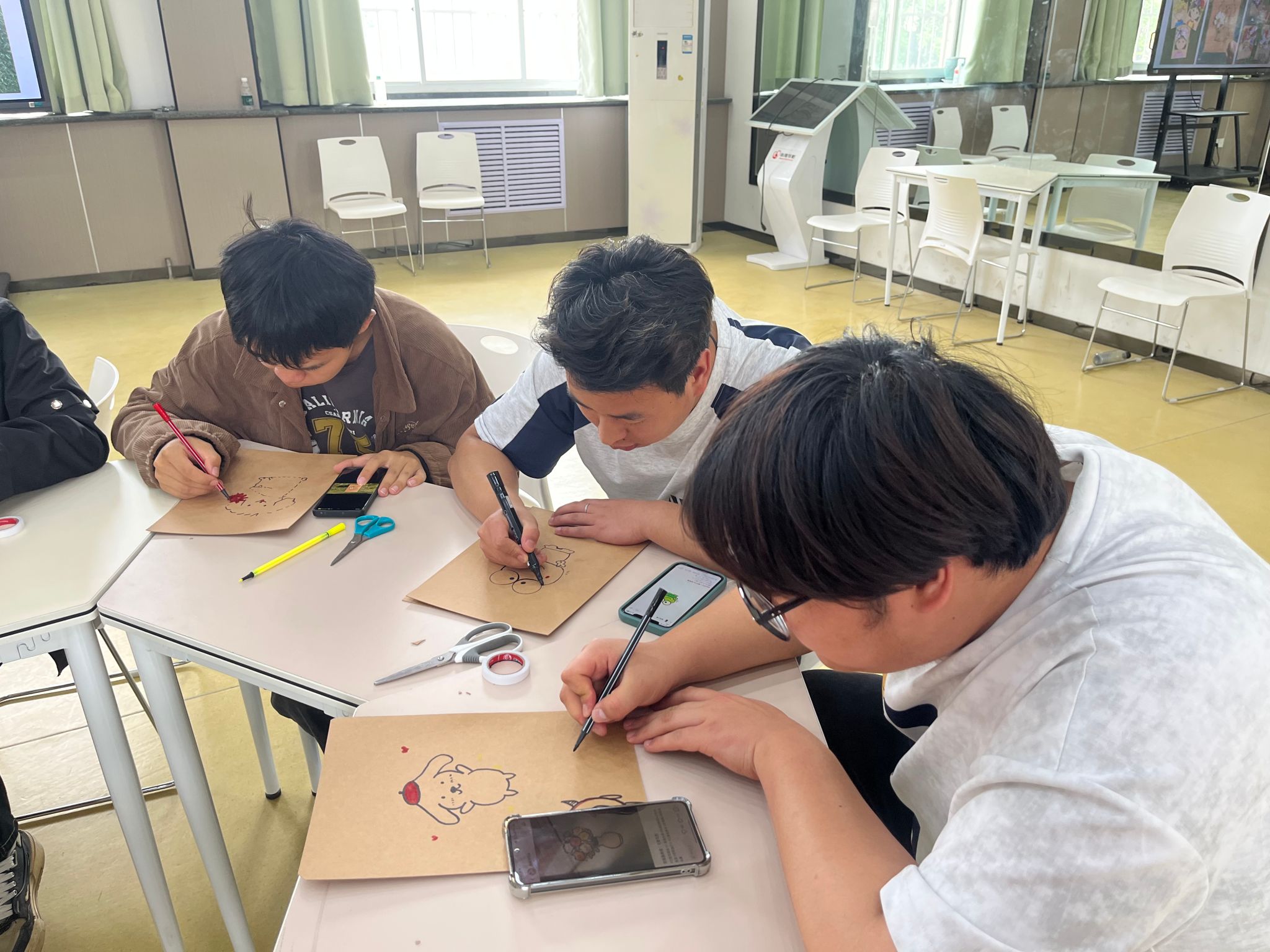 在分享交流环节,同学们结合自己创作的拼贴作品,分享了在自然探索中发现的小美好,以及创作过程中的所思所感。通过坦诚互动与交流,大家既在他人的分享中收获了共鸣与力量,也在自我表达中梳理了内心情绪,更加清晰地认识到自己与他人的独特之处,也学会正视成长中的不足,接纳不完美的自己,实现了同伴间积极正向的心理支持。