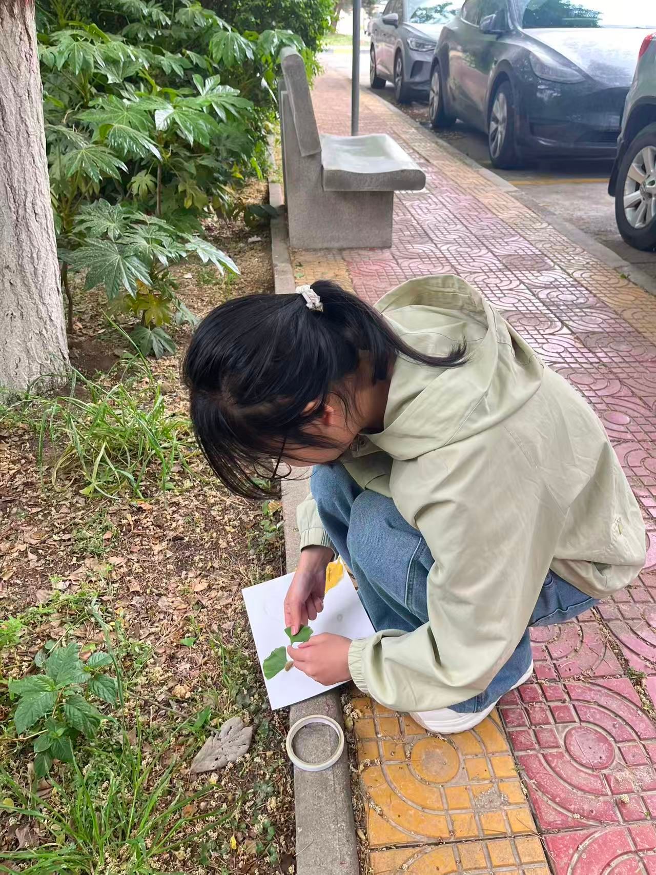素材收集过程中,全体参与人员严格遵循“无痕寻宝”原则,仅捡拾地面的落叶、枯枝、松果、落花等自然植物。