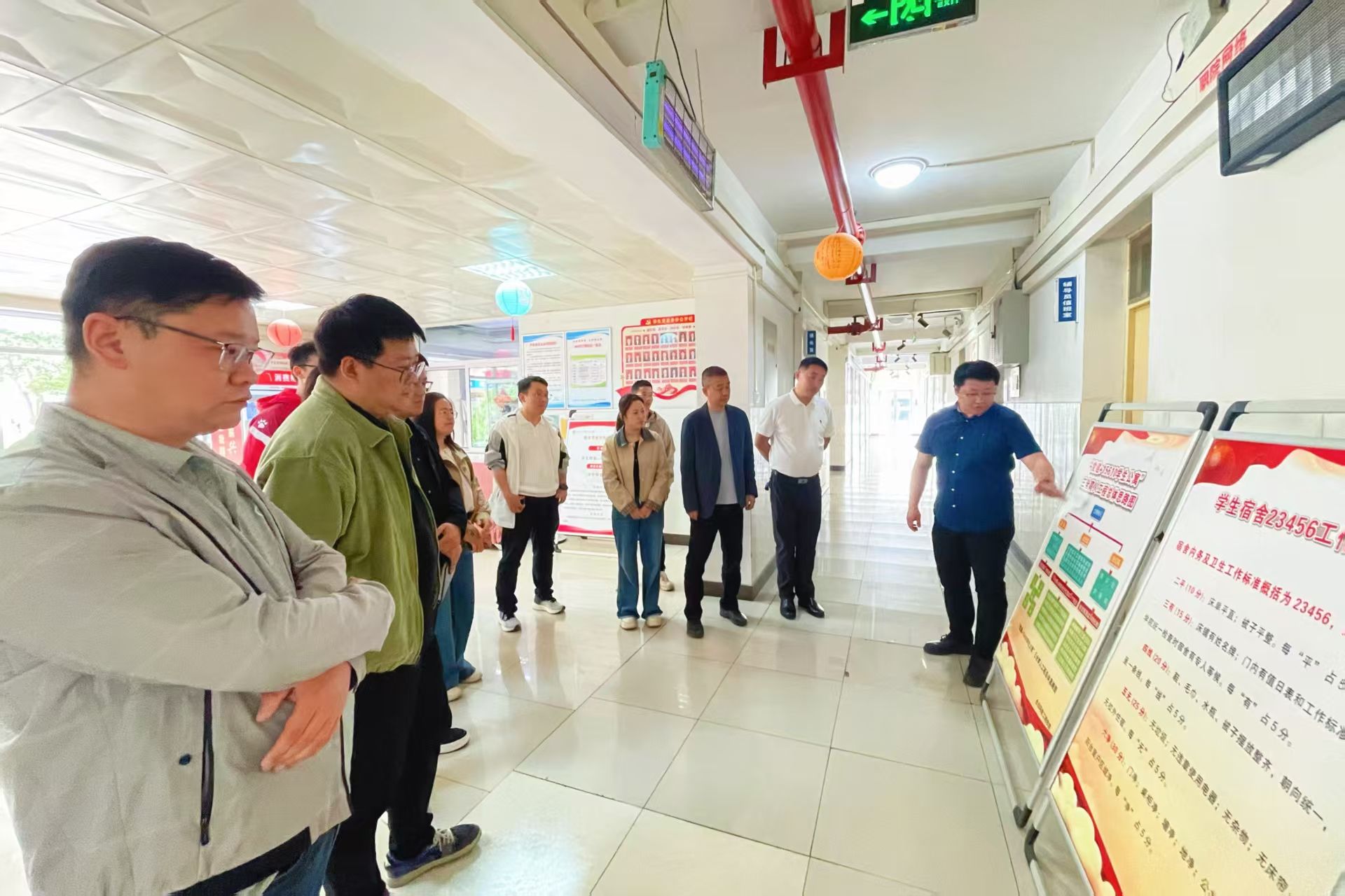 本次观摩调研以西校区204号女生公寓楼、202号男生公寓楼为现场,重点聚焦生态环境工程学院在公寓育人领域的创新实践成果。活动现场,辅导员李垚系统介绍了学院“党建+15610学生公寓”三全育人工作模式,详细阐释了公寓文化墙建设、内务卫生标准、考评机制完善、公寓党员先锋岗设置等具体举措,全景式展现了学院以学生公寓为关键阵地,深耕三全育人、创新文化浸润的实践探索与特色经验。
